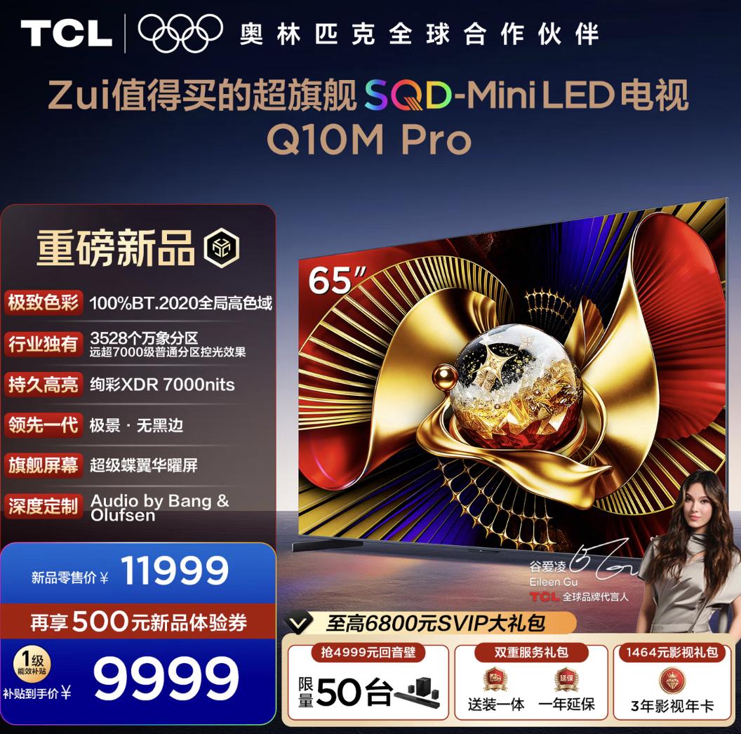 最让人意外的是,这样一款满配超旗舰,起售价为11999元,叠加国补后到手价低至9999元。要知道同配置的RGB-Mini LED电视价格往往高出不少,而Q10M Pro不仅在画质上碾压同级,还把高端技术做到了人人可享的价位。作为连续5年中国Mini LED电视销量第一的品牌,TCL这次是真的把用户需求放在心上,用技术沉淀打破了高端电视的价格壁垒。
