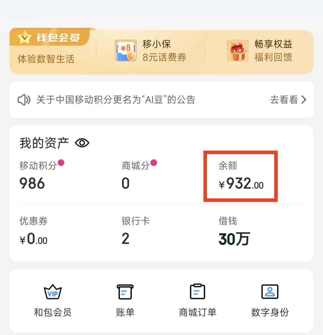 如果你没那么多信用卡要还,还可以用第二个方法,下载一个和包APP,用交通银行的卡给和包里面的余额充值,还是充3笔,每笔满62即可达标,但是这个方法每个月最多只能充值5000元。