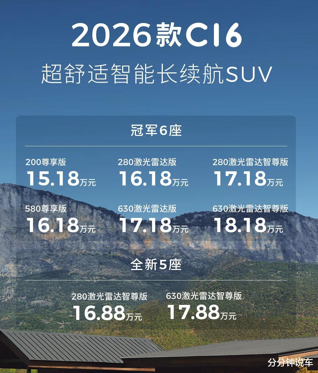 通过几位真实车主的反馈,可以看出大家对于这台车的评价普遍都很高,而且也都是家庭消费者,足以说明零跑C16在家庭用户中的口碑相当不错。随着2026款零跑C16的推出,整体的产品力进一步升级,但价格依旧保持实惠。