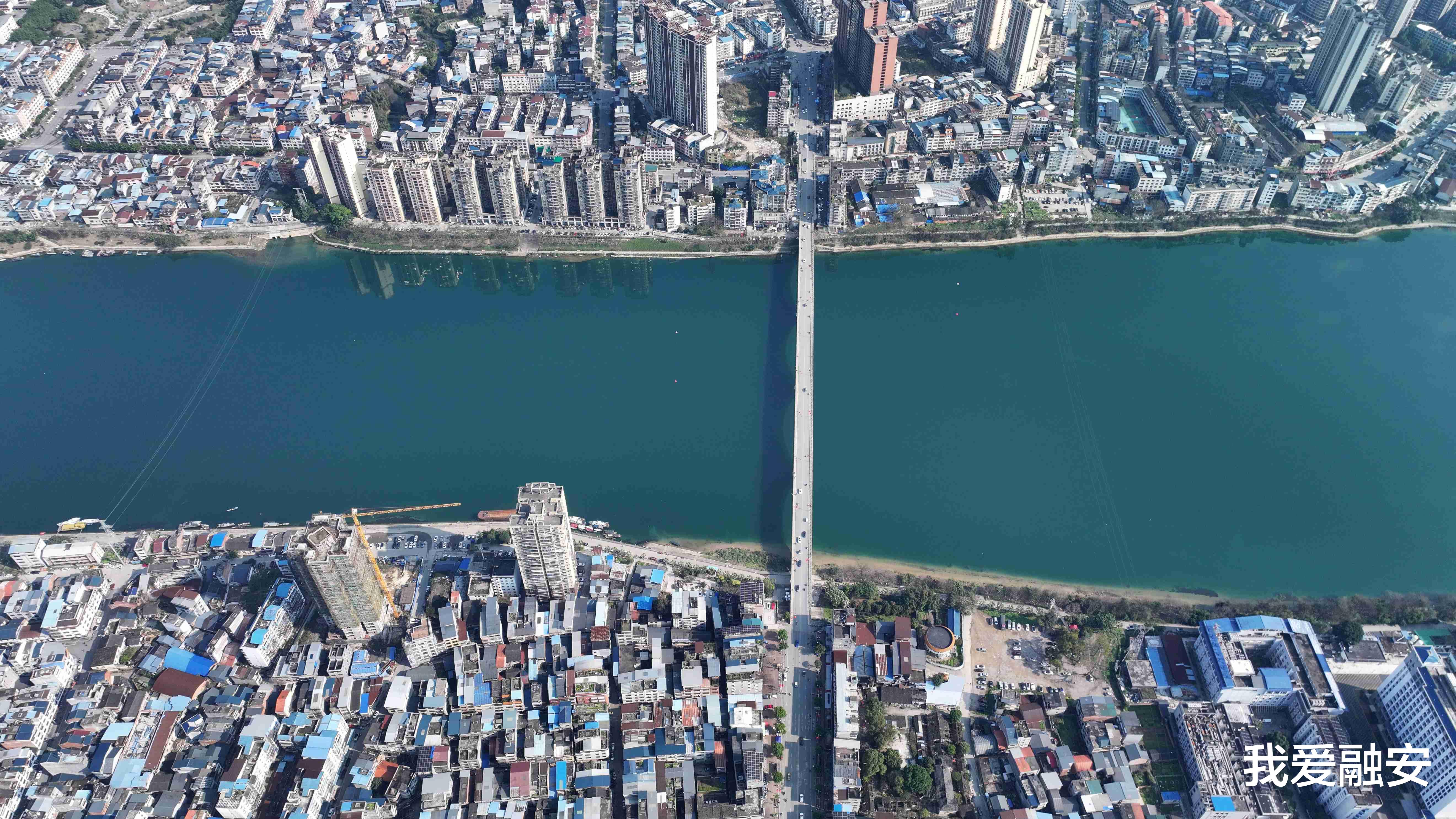 2月20日,珠江上游融江广西柳州市融安县城段天蓝水碧,美如画卷(无人机全景照片,谭凯兴 摄)。
