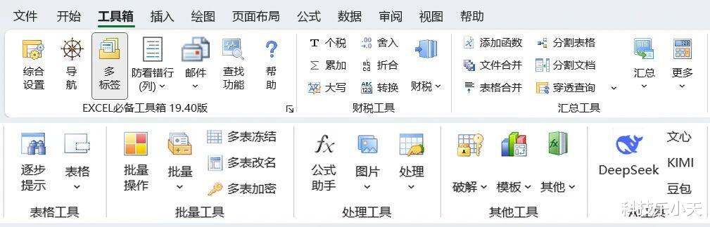 安装完成后,打开excel表格,在顶部选项卡中会多出一个工具箱选项,说明安装成功。