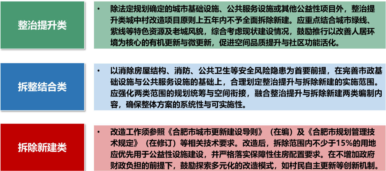 改造方式:明确“整治提升、拆整结合、拆除新建”三类城中村整体改造要求。