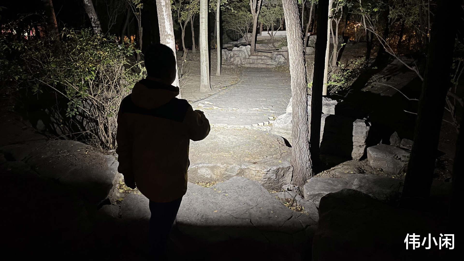 公园内散步,面对黑暗的步道,X4秒变生活手电,照亮前行路。