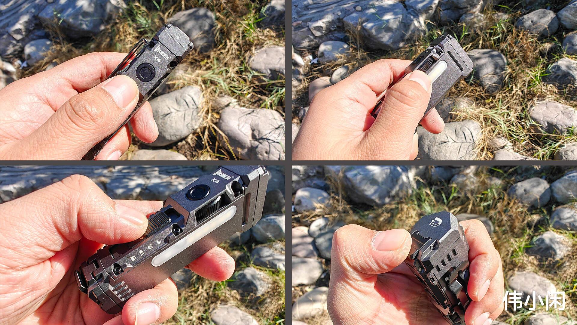 务本X4这款手电的可操作性极强,分为模式调节、滚动调节、档位切换、战术尾按四个操作部分。初次入手使用需要多次练习每个模式的操作才能6到飞起!