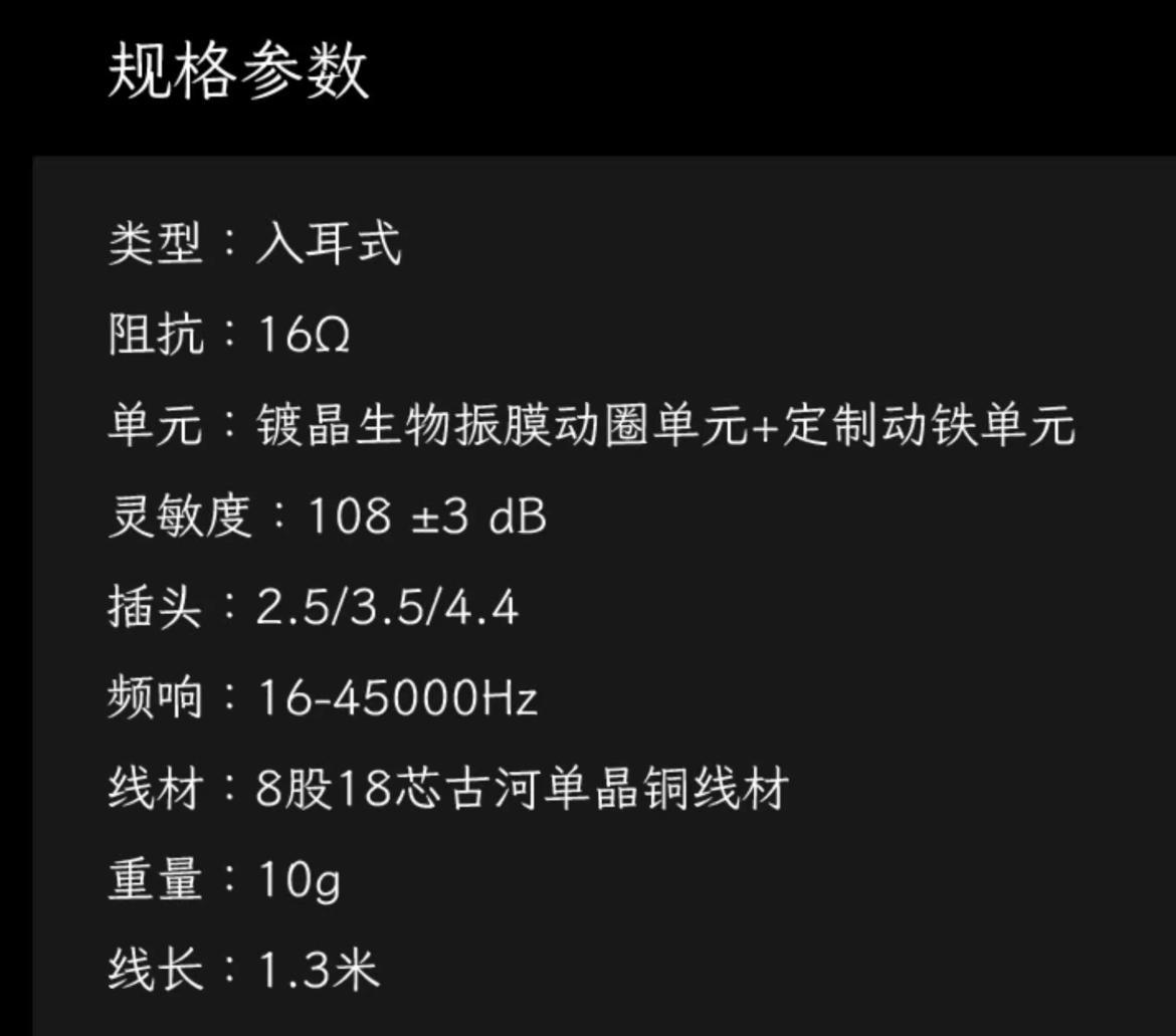 其它关于腔体避免谐振失真的相关设计,古河单晶铜在线材上的应用,可更换式插头等,就不过多赘述。在最后,放个参数图,供爱好者们参考,16~45000Hz的频响性能也是很不错。