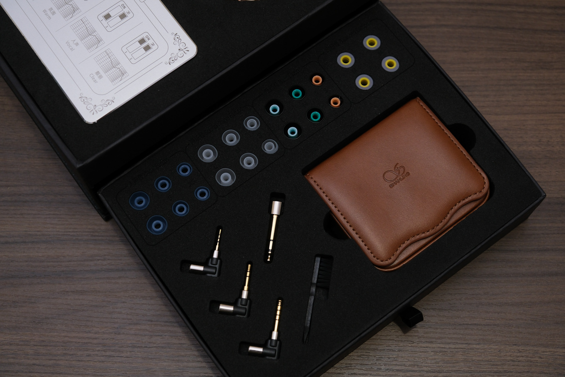 6颗动铁中,两颗中频、两颗高频、两颗极高频的分配方式,能看到单元上印有山灵Logo,看来是纯纯的专属定制品了。