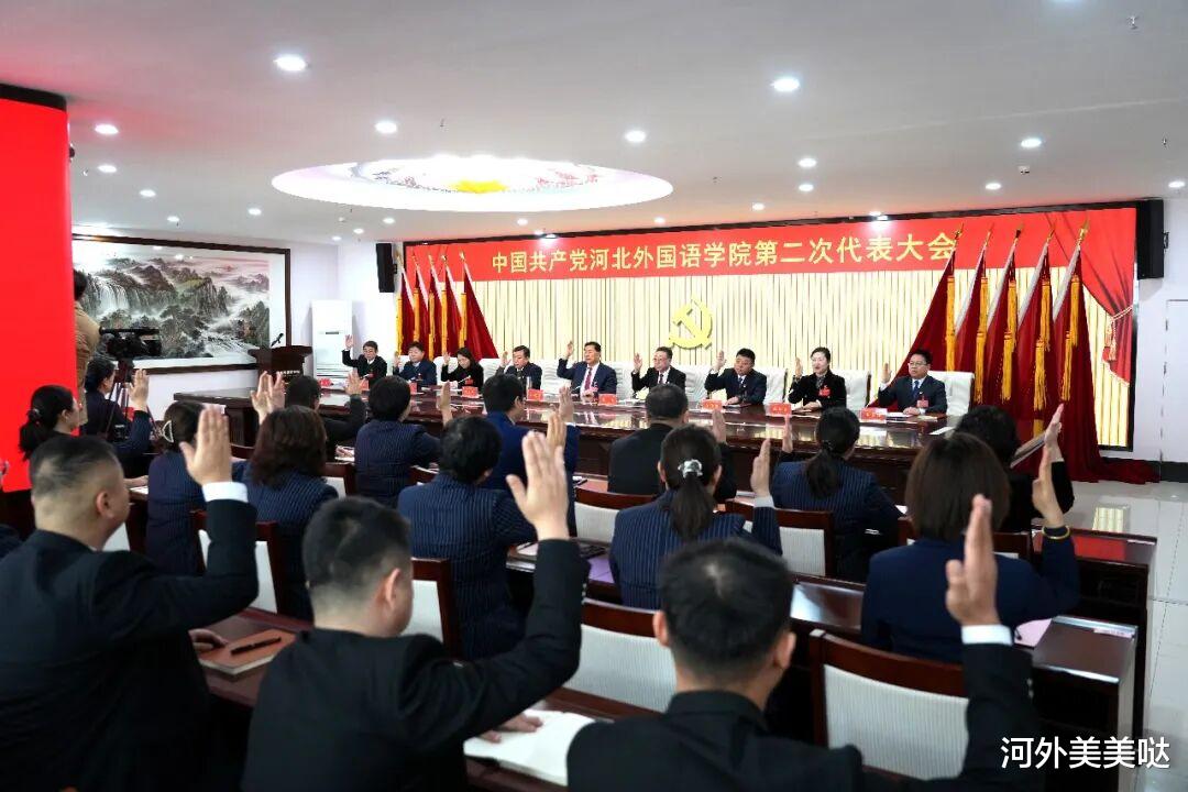 经全体代表充分审议,大会以举手表决的方式,一致通过了上一届委员会工作报告和《中国共产党河北外国语学院第二次代表大会关于党费收缴、使用和管理情况的报告》。