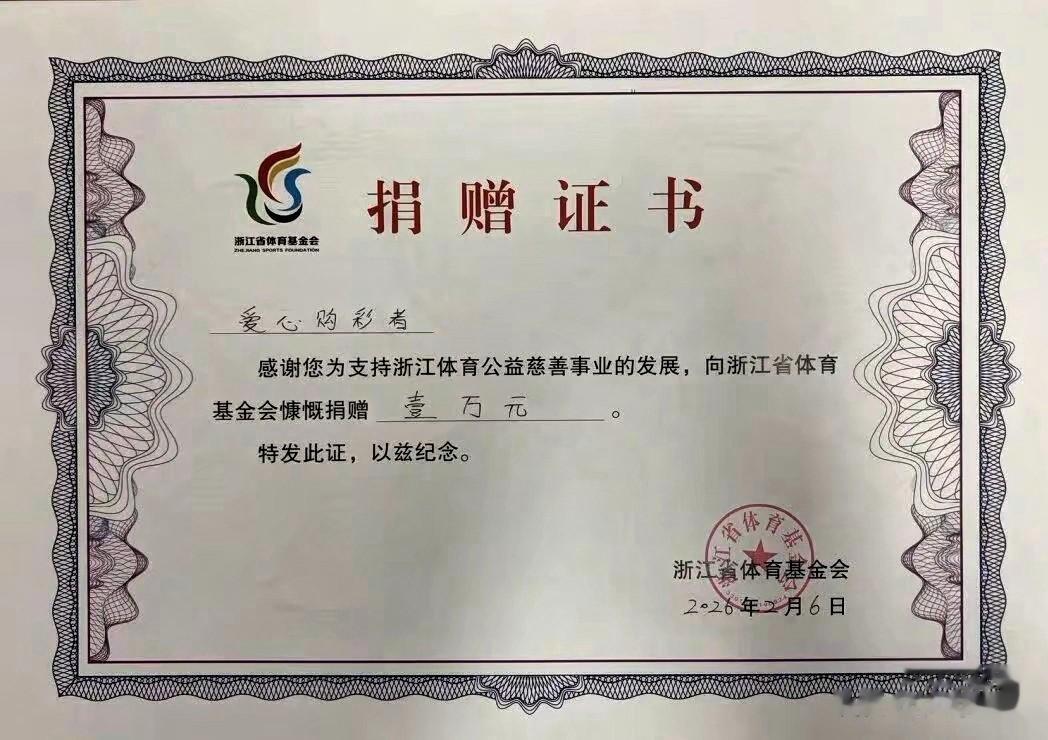 领奖时捐了2万块,这事你怎么看?2月6号,孙先生到浙江省体彩中心领奖时,做了件挺有意思的事——他当场捐了2万块钱,给浙江省体育基金会和青少年发展基金会各1万。