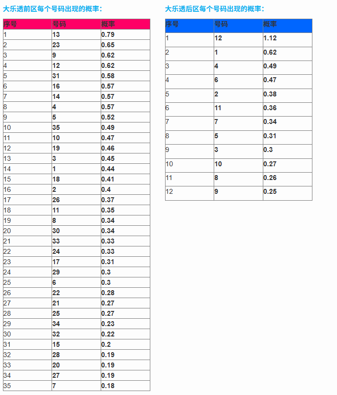 概率数据如下: