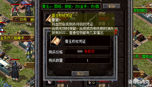 热血传奇合击版本现在几个服务器都挺满,不知道是真的挤爆了还是什么原因。进游戏之后看着挂机的角色有不少,应该都是氪金玩家等着分身修炼吧?现在合击版的摆摊区也是货物齐全,从小首饰到重装,从技能书到材料,只要马内足啥都能买到,这应该大多都是工作室的主要功劳,不佩服不行啊。在众多摊位中,有一类新出的道具比较特别,它们就是装备合成凭证,今天老道就和大家唠唠这个东西。