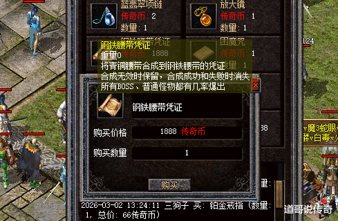此前在各类非官服版本中有二合一模式的,即两件同样的装备可以直接合成或者加一定材料合成高一级的装备。这个新百区合击版的装备凭证应该也是这个模式,如果是直接合成高端武器,还算是比较良心了;如果是需要一些条件合成,比如金币啊,传奇币之类的道具,那就是另一种收米渠道了,说明运营很有头脑。