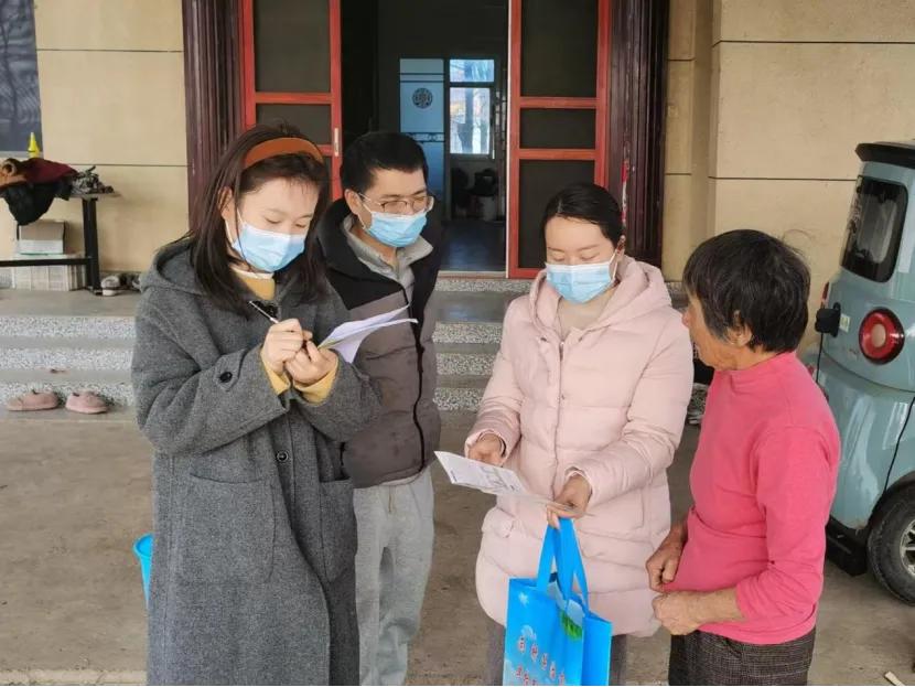 2月2日,工作人员在村医的带领下,直奔各牛羊养殖户家中,与养殖户面对面交流,现场发放宣传折页、围裙等宣传物资,用通俗易懂的语言详细讲解了布病的病原学特点、传播途径(主要通过接触、消化道、呼吸道传播)、临床表现及对劳动者健康造成的长期危害。北洲子镇向东村的赵医生对群众说道:“隔壁村某某就是因为得了布病,未及时治疗,造成很严重的关节炎,连路都不能走了”。群众听得十分认真并表示认识到了其危害性。
