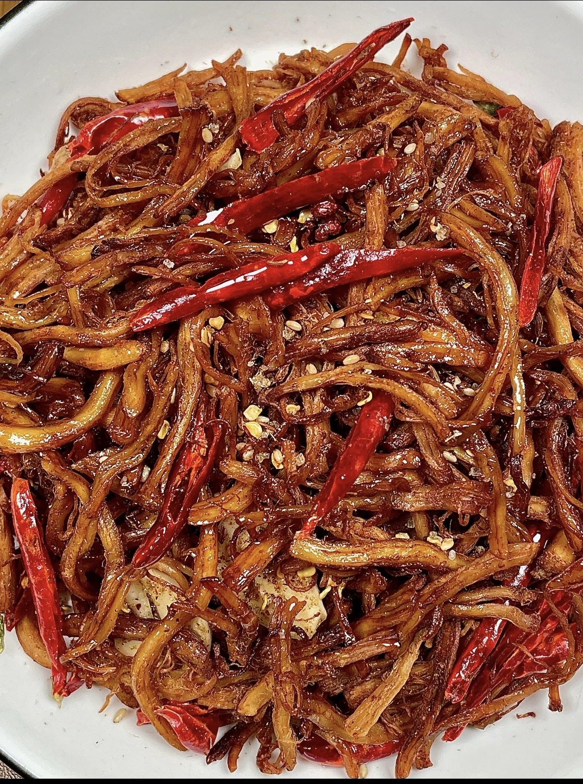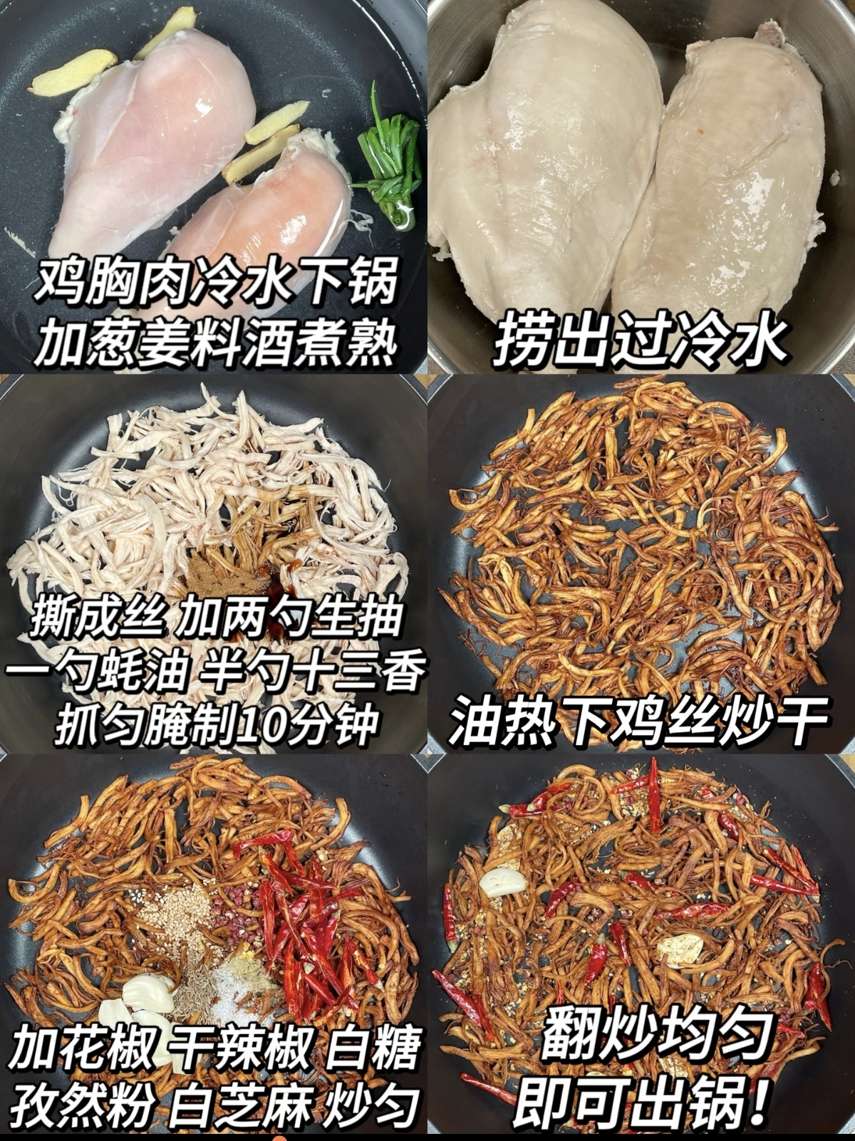 如果你问我,有什么菜既能当下酒菜,又能当追剧时停不下来的“手不停”零食,那我必须强烈安利这道麻辣鸡丝!它可不是普通的凉拌菜,而是经过精心烹制、麻辣鲜香、酥脆有嚼劲的灵魂美味。鸡丝吸饱了花椒与辣椒的复合香气,每一口都带着微微的麻和恰到好处的辣,越嚼越香,根本停不下来。无论是作为餐桌上的硬菜,还是深夜追剧时的解馋小食,它都能瞬间抓住你的味蕾,让你直呼“真绝了”!