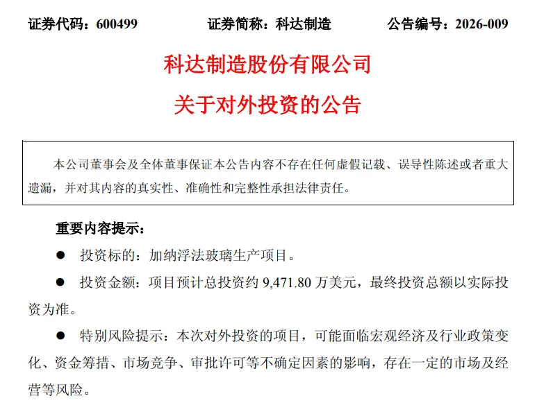 这一举措是科达制造贯彻“大建材”战略、深化全球布局的关键一步。公告分析,近年来,在非洲经济稳定发展、人口持续扩大以及基础设施投资增加等多重因素驱动下,非洲建材市场需求持续增长。综合考虑加纳本土玻璃产能缺乏、周边国家当前市场容量及未来增长潜力等因素,公司把握当下窗口期建设玻璃生产线,有利于实现加纳本土及西非等周边国家玻璃市场的进口替代,并抢占市场先机。