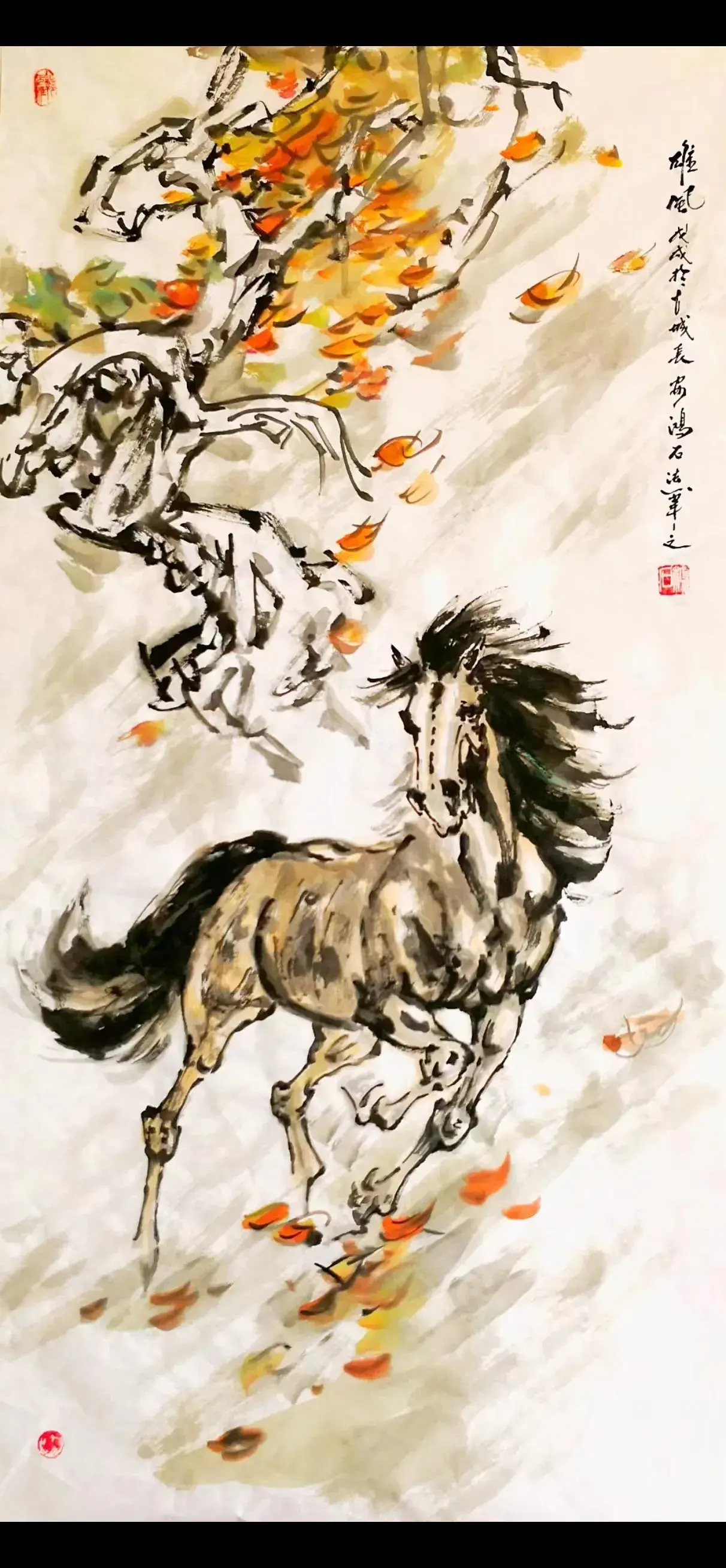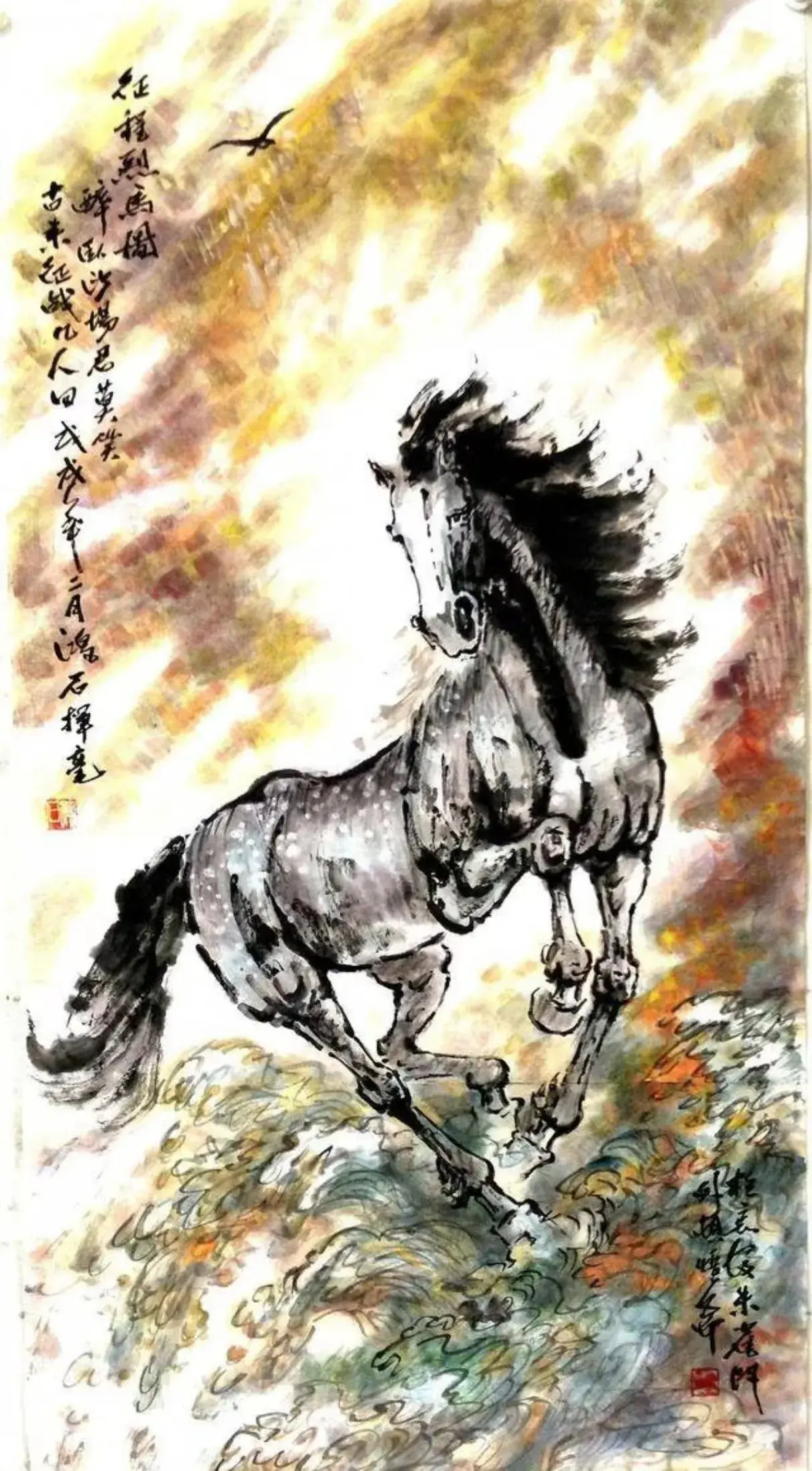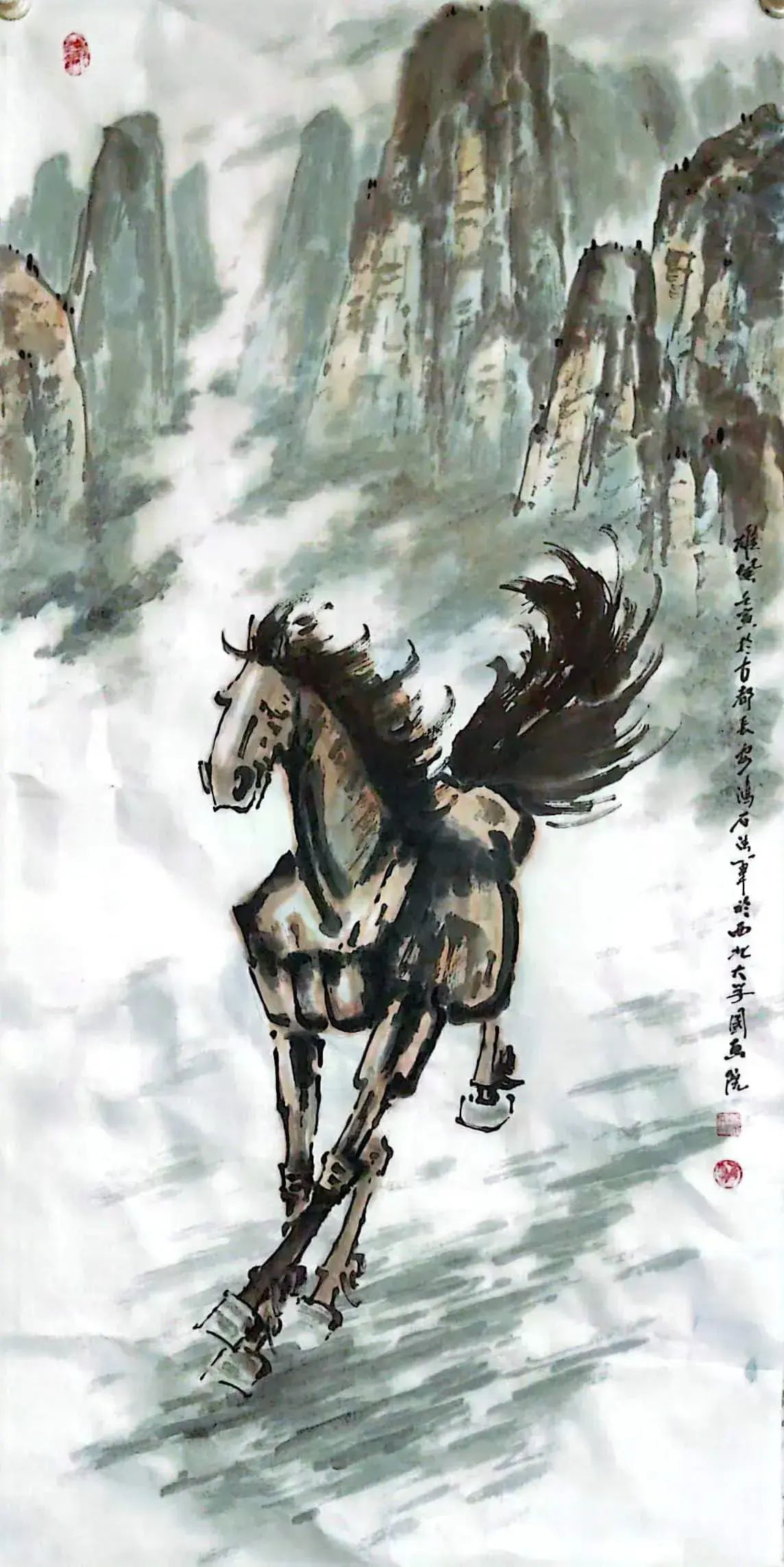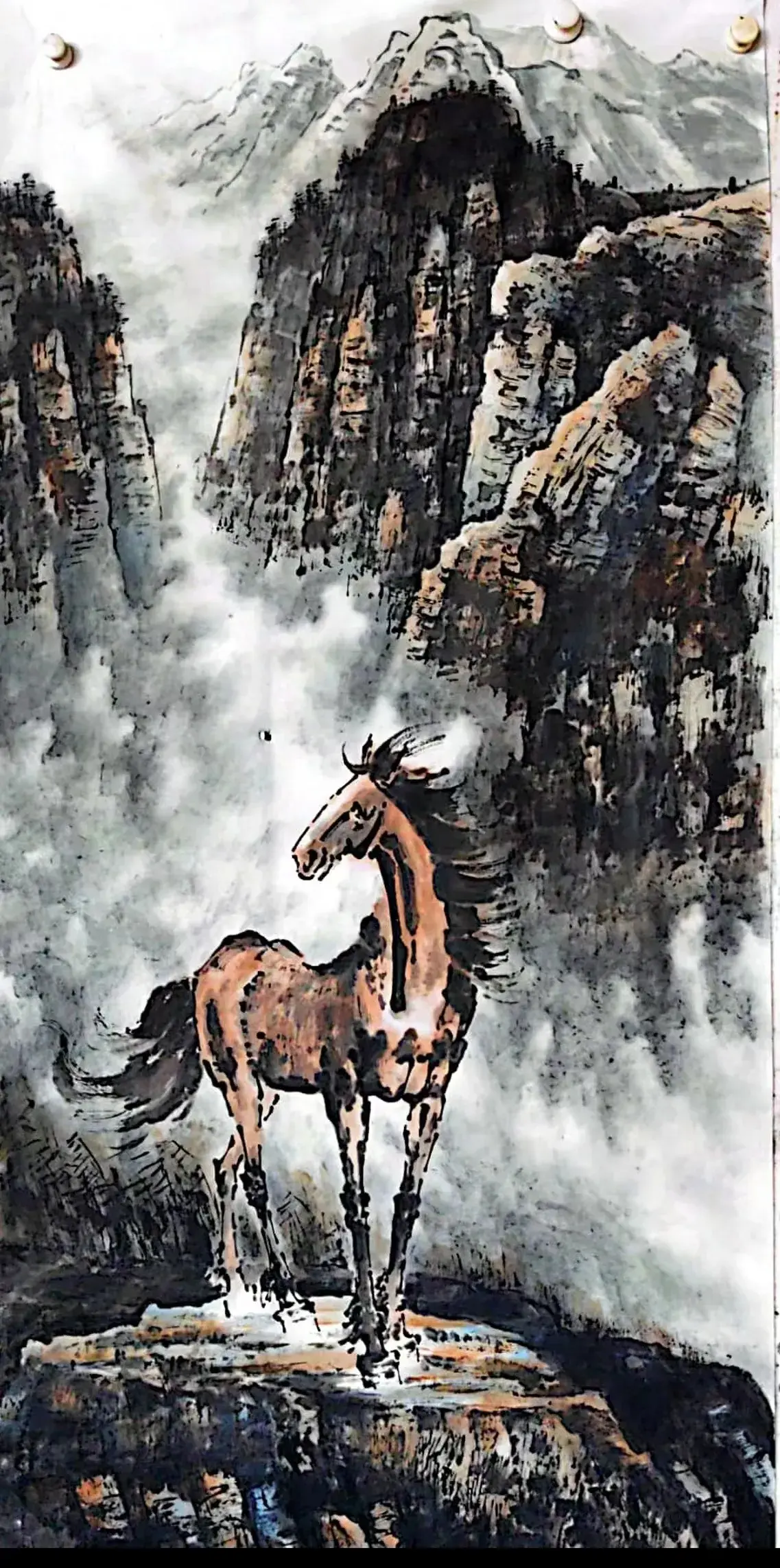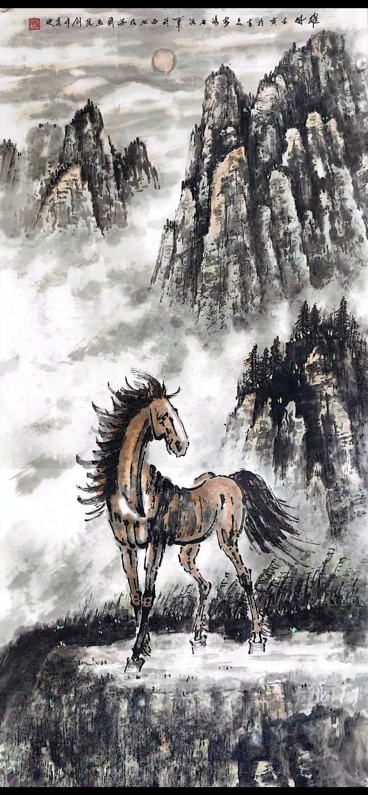 周鸿石以水墨大写意的形式来表现马的精神特质。他用笔精炼而有力,色彩温婉而自然,通过水墨的浓淡、干湿、深浅,表现出马的忠诚、勇敢、勤劳、昂扬向上、势不可挡、勇往直前的精神特质。
