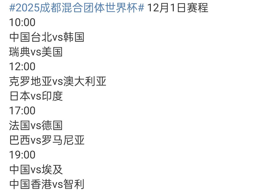 2025年12月1日,乒乓球混团世界杯来到第二个比赛日,第一阶段小组赛继续进行,国乒遭遇本届第二位对手埃及队,韩国对阵中国台北、德国对阵法国,成为焦点之战,引起外界球迷关注。