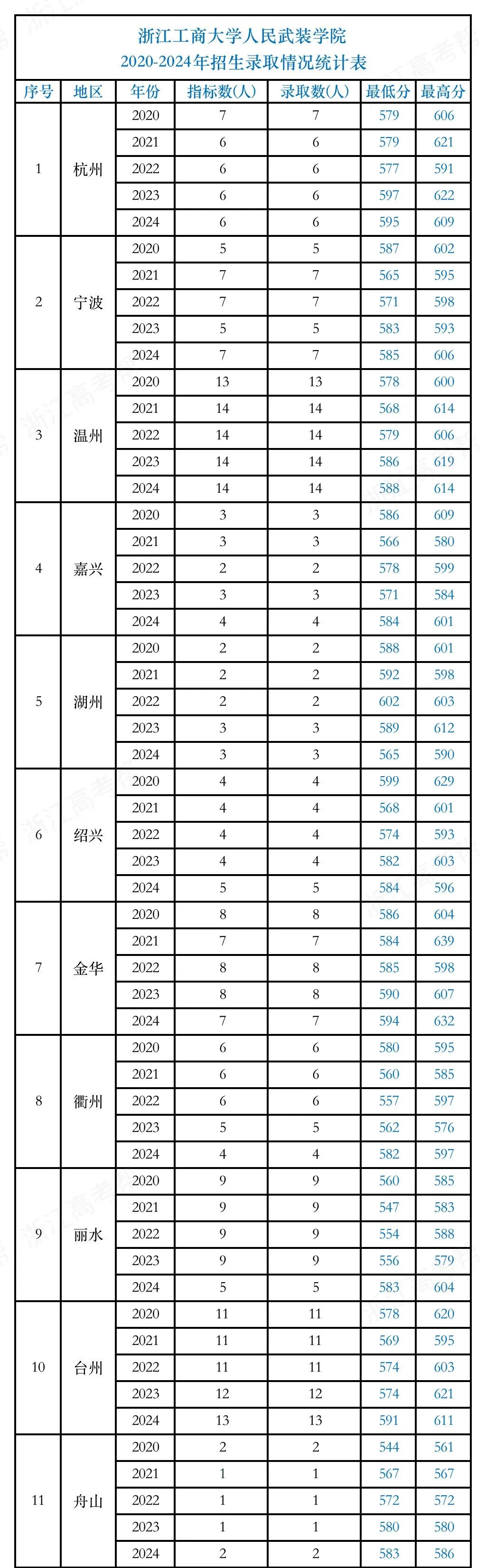 各地市录取最低分为:杭州607,宁波598,温州606,绍兴612,湖州599,嘉兴612,金华608,丽水586,衢州595,舟山587,台州594。