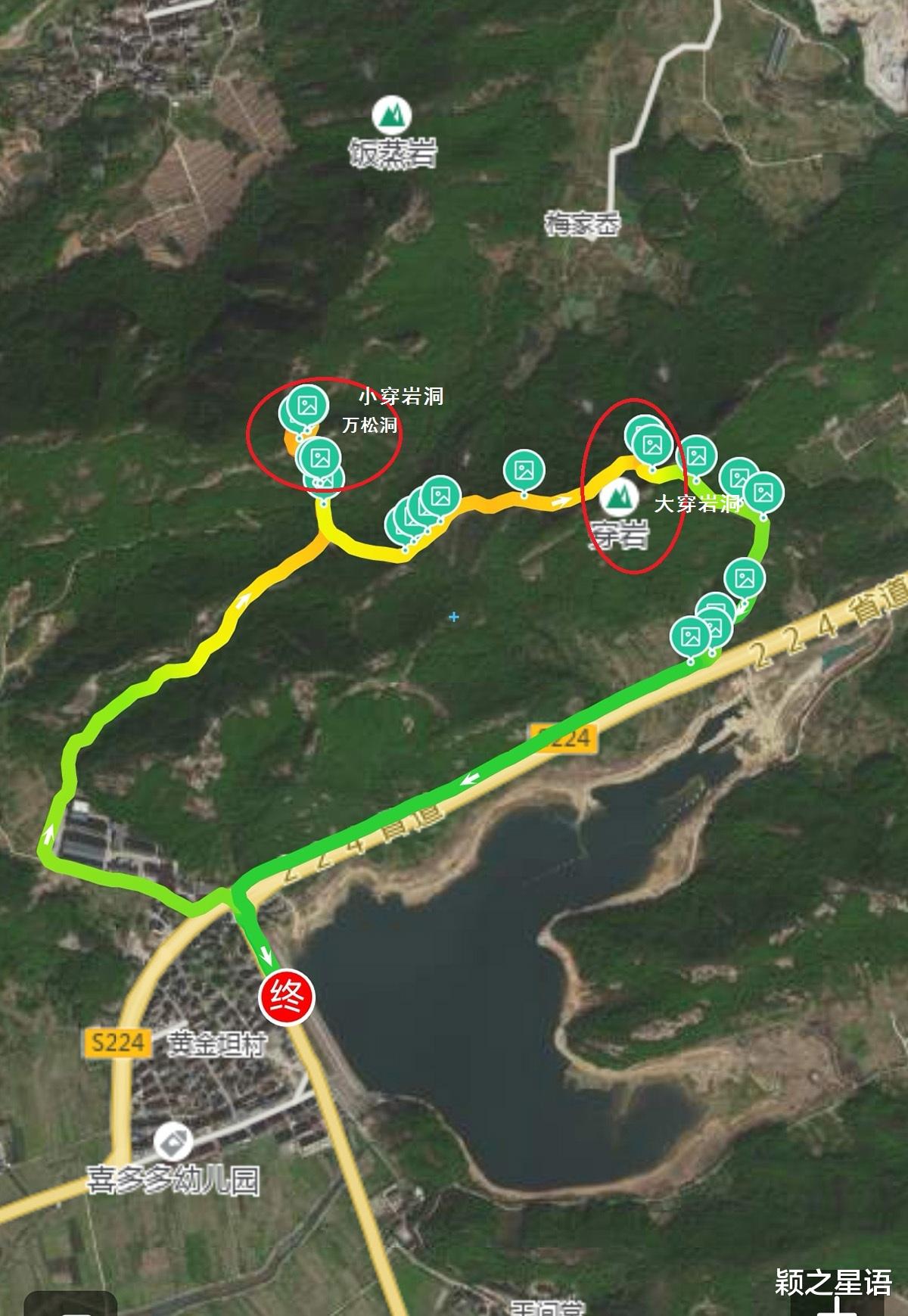 从黄金坦村经大穿岩洞、万松洞和小穿岩洞,再下山回到黄金坦村,正好形成小环线,全程四五公里,海拔提升220多米,两个多小时即可环游完成,经典的户外休闲徒步环游线路,适合喜欢自然奇观和轻度徒步的大众化游客。