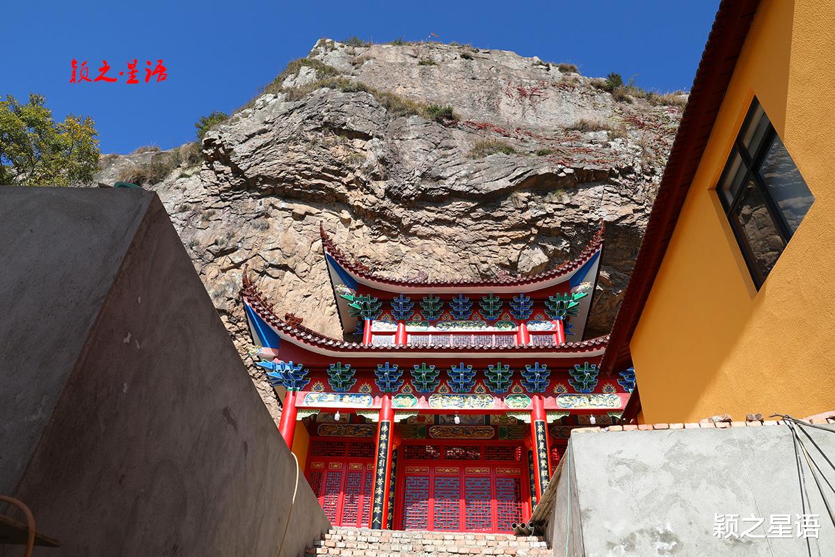 如今已在重建寺庙,黄墙窄门,大概已经道佛转换,如今已经看不清楚洞壁模样,只能从外面看到万松洞的大致轮廓,见证着自然与文化的沧桑变迁。