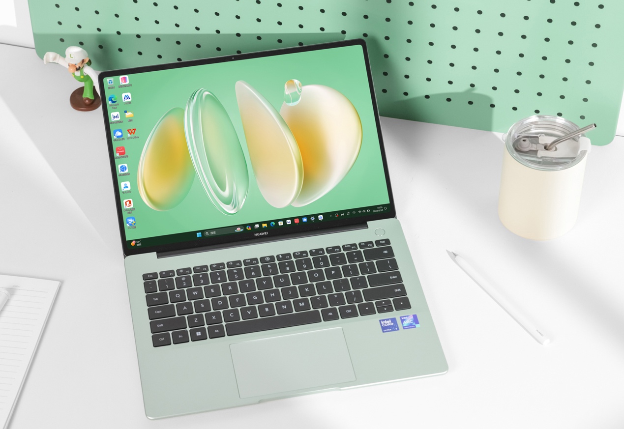 跨设备协作的痛点也被彻底解决。超级终端的多屏协同功能,让手机、平板电脑与笔记本电脑无缝互联,文件拖拽、跨屏操作一气呵成,手机里的工作照片、客户资料无需数据线,直接拖拽到电脑文档中;超级中转站则能暂存各类文件,跨应用、跨设备粘贴,整理年终数据时不用反复切换窗口。2.8K OLED触控屏搭配3:2生产力屏比例,文档浏览时能显示更多内容,十点触控配合HUAWEI M-Pencil套装(第三代),论文批注、方案修改直接手写,更符合创作习惯;1.31kg的轻薄机身+70Wh大电池,无论是通勤办公还是返乡赶工,随身携带无压力,40W超级快充还能快速回血。原野绿ID美学设计更是完美符合现代审美,真正实现了“中看又中用”。