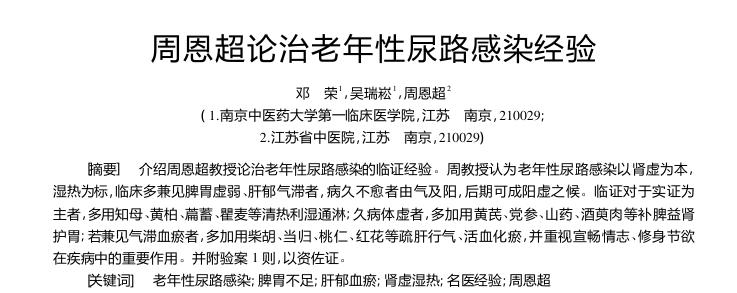 参考资料[1]邓荣,吴瑞崧,周恩超.周恩超论治老年性尿路感染经验[J].湖南中医杂志,2025