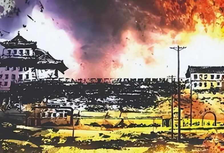 据《天变邸报》记载,一个巨大的火球从地面翻滚上升,形成“烟云直上,如灵芝状”的蘑菇云。冲击波以火药库为中心向四周扩散,半径达两公里范围内瞬间沦为废墟。