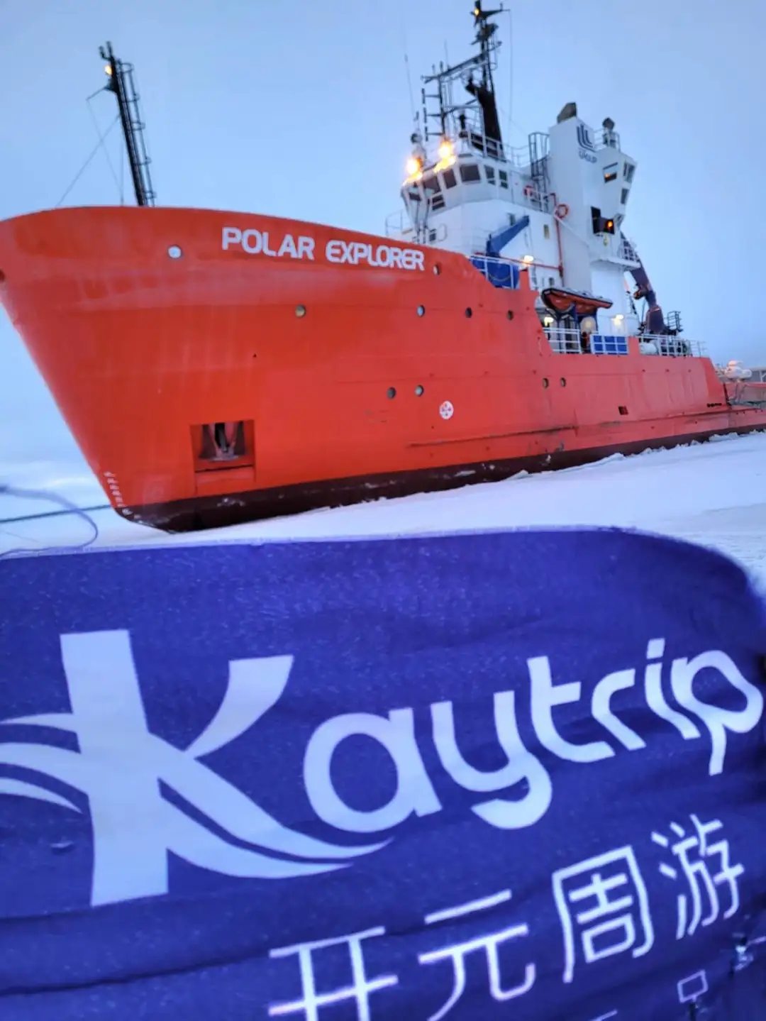 早餐后,乘大巴前往波的尼亚湾码头,远远就能看到红色的破冰船停靠在冰封的海面上,极具视觉冲击力。登船后先换上专业保暖装备:防水连体服、防滑靴、厚手套,穿上后虽像个 “太空人”,但保暖效果满分,即便在零下 20℃的甲板上也能安心活动。