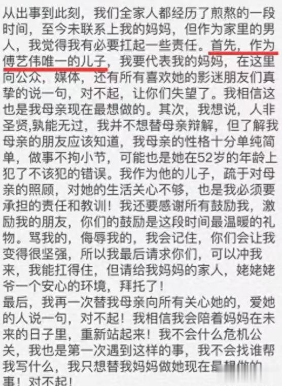 正在中央戏剧学院就读的他,没有选择逃避,更没有嫌弃母亲,而是替母发声,向公众致歉。
