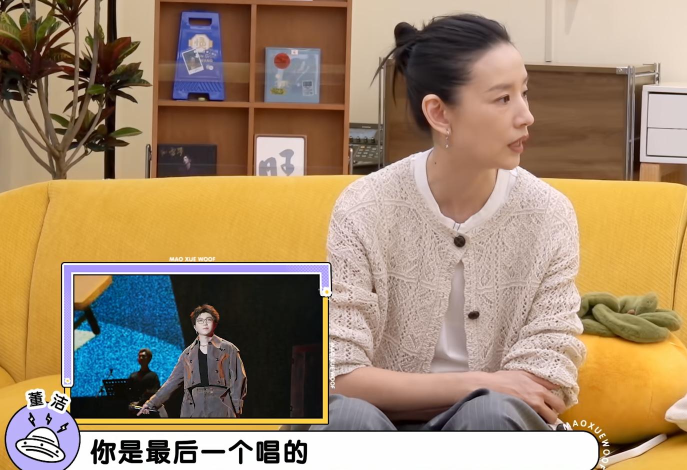 夸奖毛不易时,她讲述自己带着儿子顶顶去大连参加音乐节,毛不易是最后一个登场,“第一次听到你现场,印象特别深刻”;