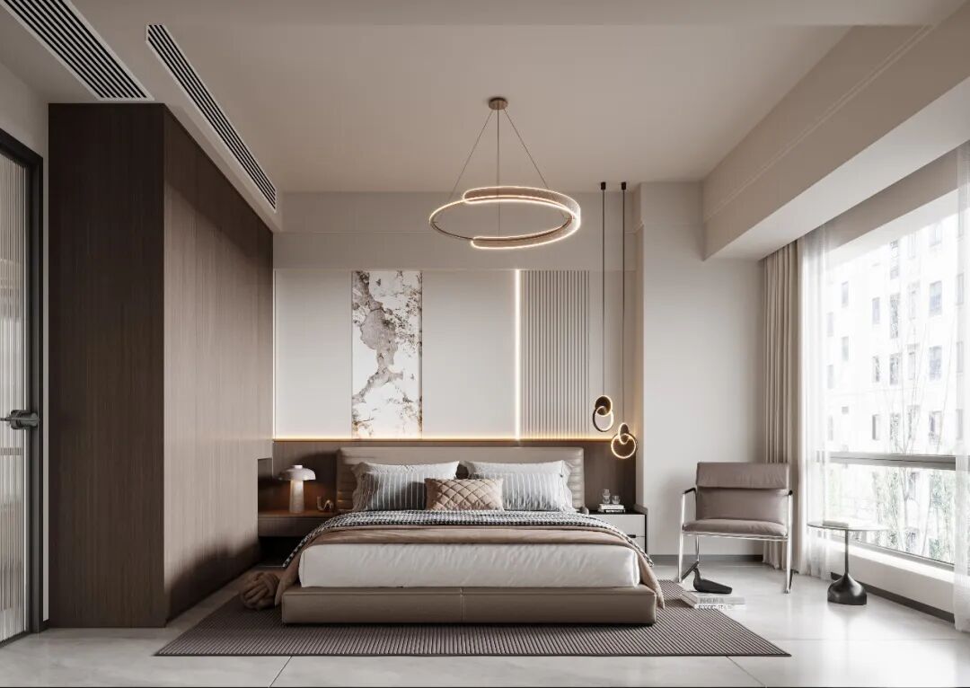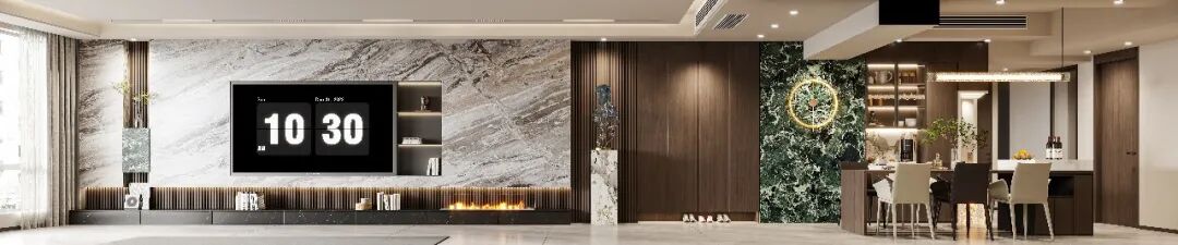 设计要点/划重点:大户型装修2个关键:1、材质“搭”着来:大户型别只盯冷材质,用木纹(暖)+大理石(冷)+皮质(柔),空旷感秒没;2、细节“暖”起来:每个空间加1-2处氛围灯(灯带/小吊灯),再冷的风格也能裹着生活气。