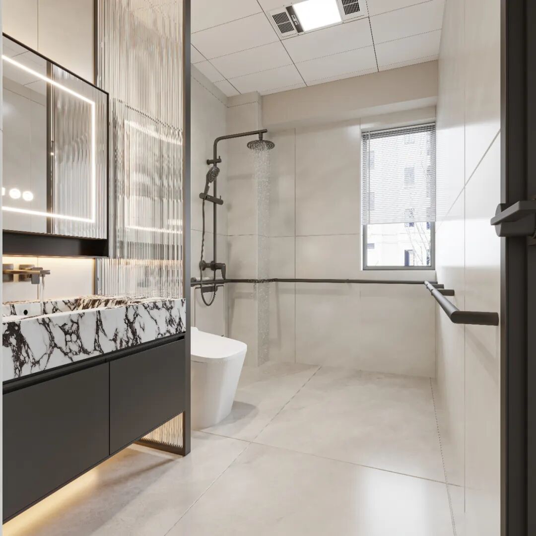 玻璃隔断分开淋浴区,干湿分离不踩水