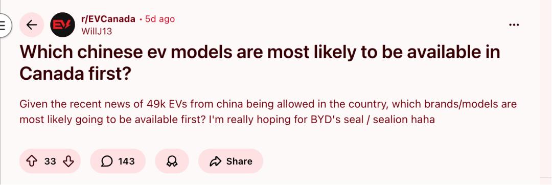 当加拿大政府为中国制造的电动汽车释放4.9万辆低税进口配额后,舆论场迅速升温。