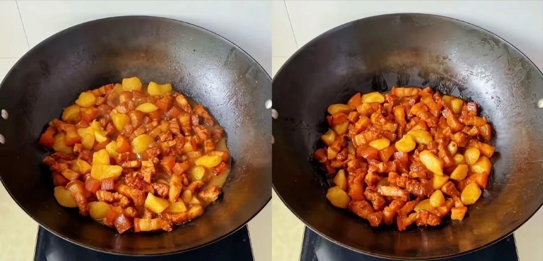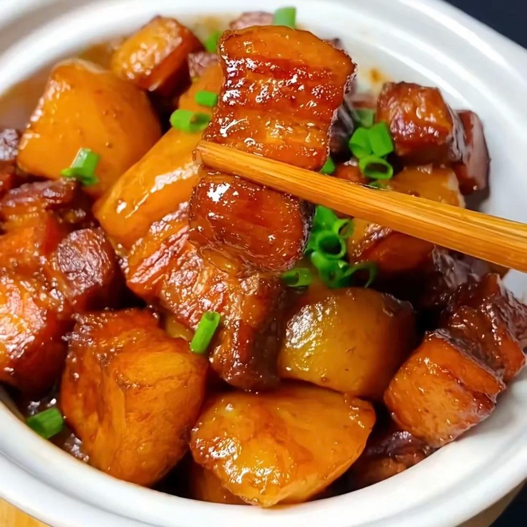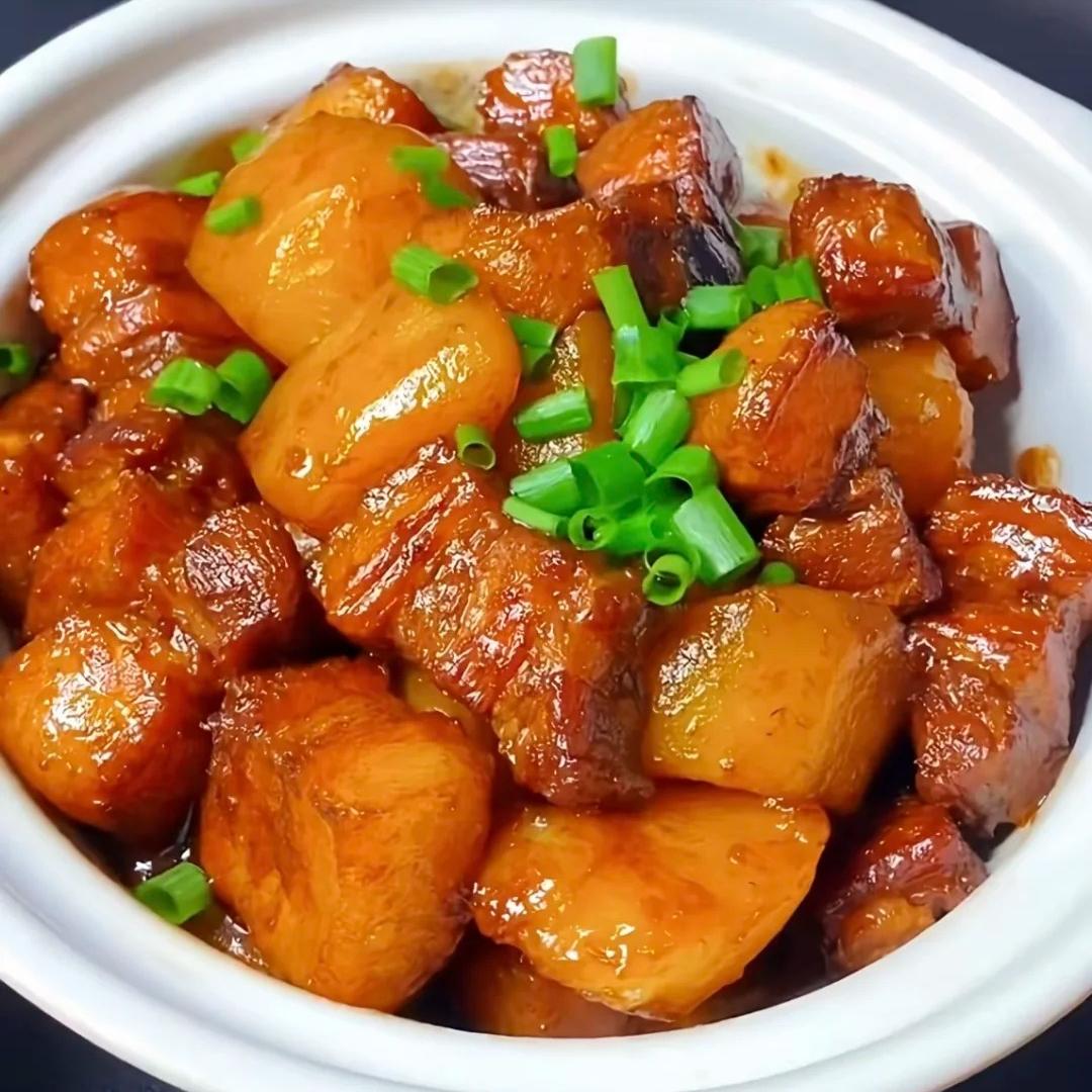 夹一块红烧肉,咬上一口,肥而不腻,入口即化;再吃一块土豆,软糯香甜,满嘴都是幸福的味道。家人们,赶紧试试这道菜吧,保证让你吃得满足又开心!