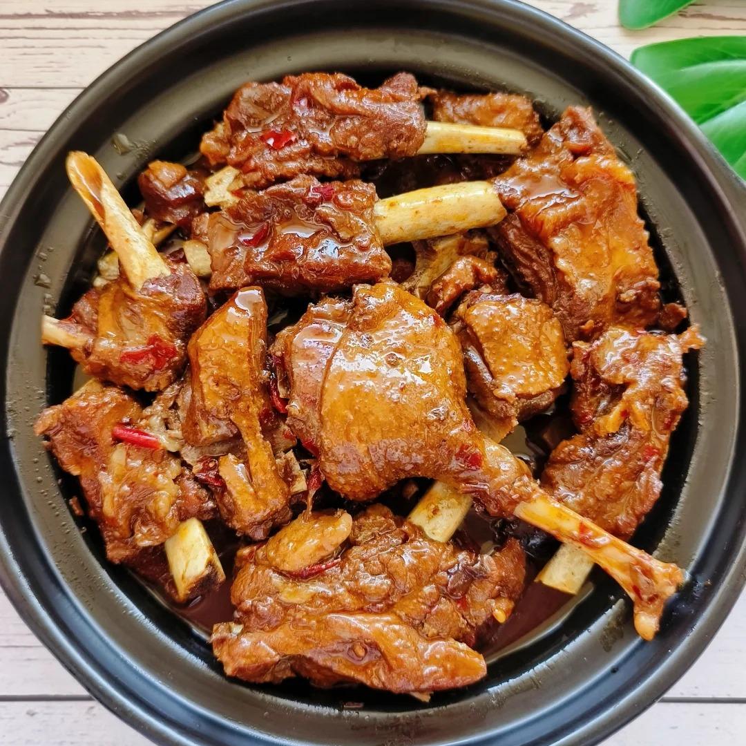 5、就这么小火慢炖着,一直炖到肉质变得软烂。你用筷子轻轻一戳,肉就能轻松地从骨头上脱落下来,那口感,别提多好了。这时候,这道美味的排骨炖大鹅就做好啦!