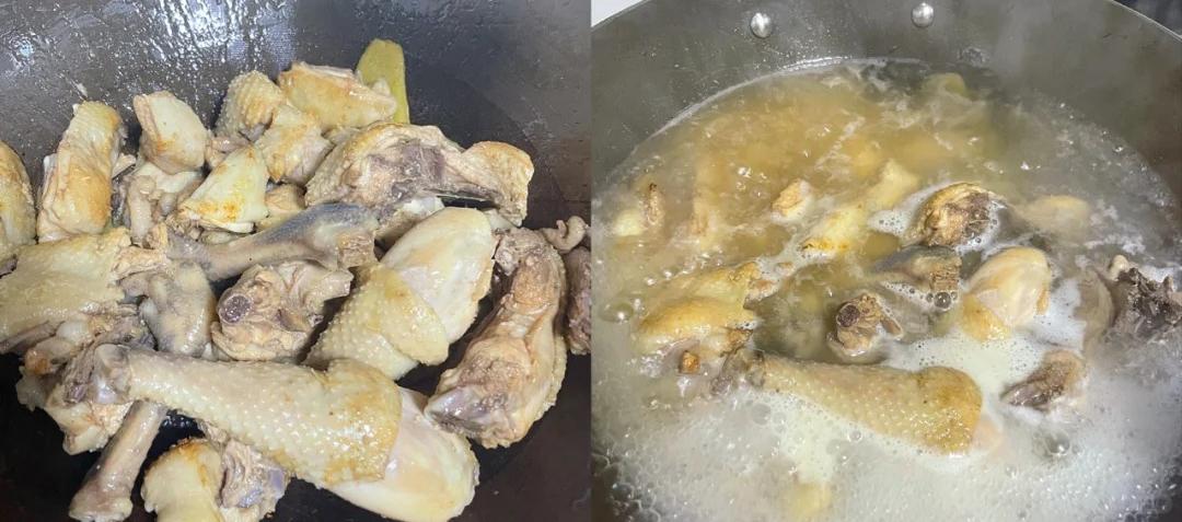 2、起锅烧油。油热了之后,把姜片丢进去,再把鸡肉放进去,用铲子不停地翻炒。炒到鸡肉表面微微有点焦黄,就可以沿着锅边来点料酒,这料酒能去腥增香。再倒上一勺生抽,继续炒,让鸡肉都裹上这调料的香味。等炒出那股诱人的香味,就往锅里加热水,水要能没过鸡肉才行。然后把提前剥好的板栗放进去,这板栗啊,得先炖一会儿才能炖烂乎。