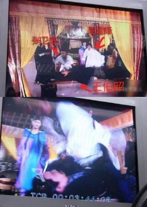 原来在拍摄的时候,有一段戏是谢霆锋张卫健暴揍"江别鹤"尸体,剧情所致,对老前辈拳脚相向也并无不妥,但这是拍戏。不知谢霆锋和张卫健是与王伯昭有私人恩怨,还是因为其他一些事情,躺在地上的王伯昭被这两个年轻力壮的小伙子狠狠地打了一顿,拳拳到肉。