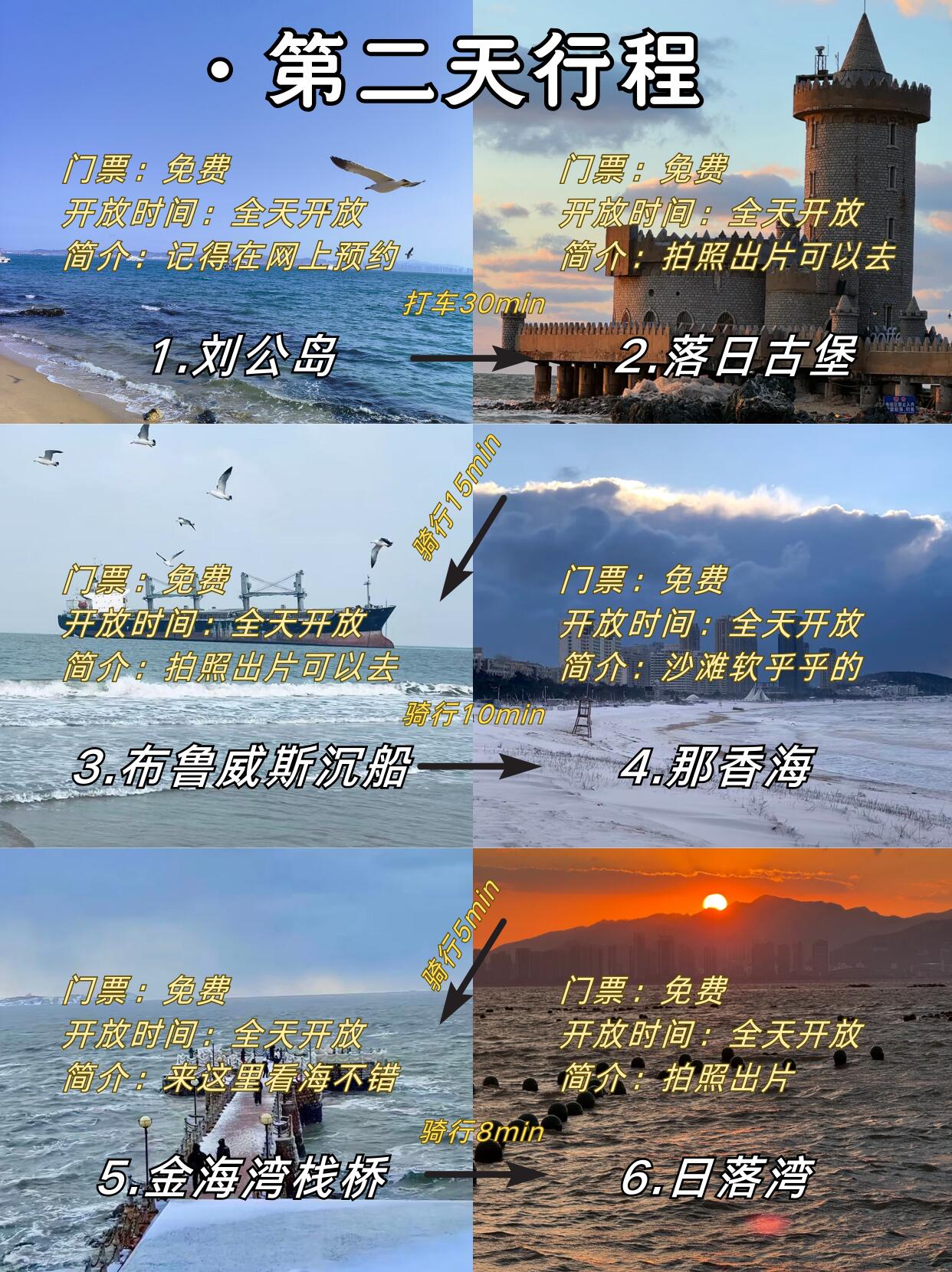 🤗第一天基本是在海边玩的,在冬季看海的感觉好神奇!拍了好多照片,发圈都能发好几天呢