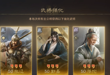 同时,王业之争加入了随机武将强化与专属战场特性机制,每轮对战会随机刷新三名强力强化武将以及多种战场特性,玩家需要根据随机内容灵活配队,依靠特性加成打造独特战术,有效避免了队伍同质化的问题,配队博弈的乐趣拉满。
