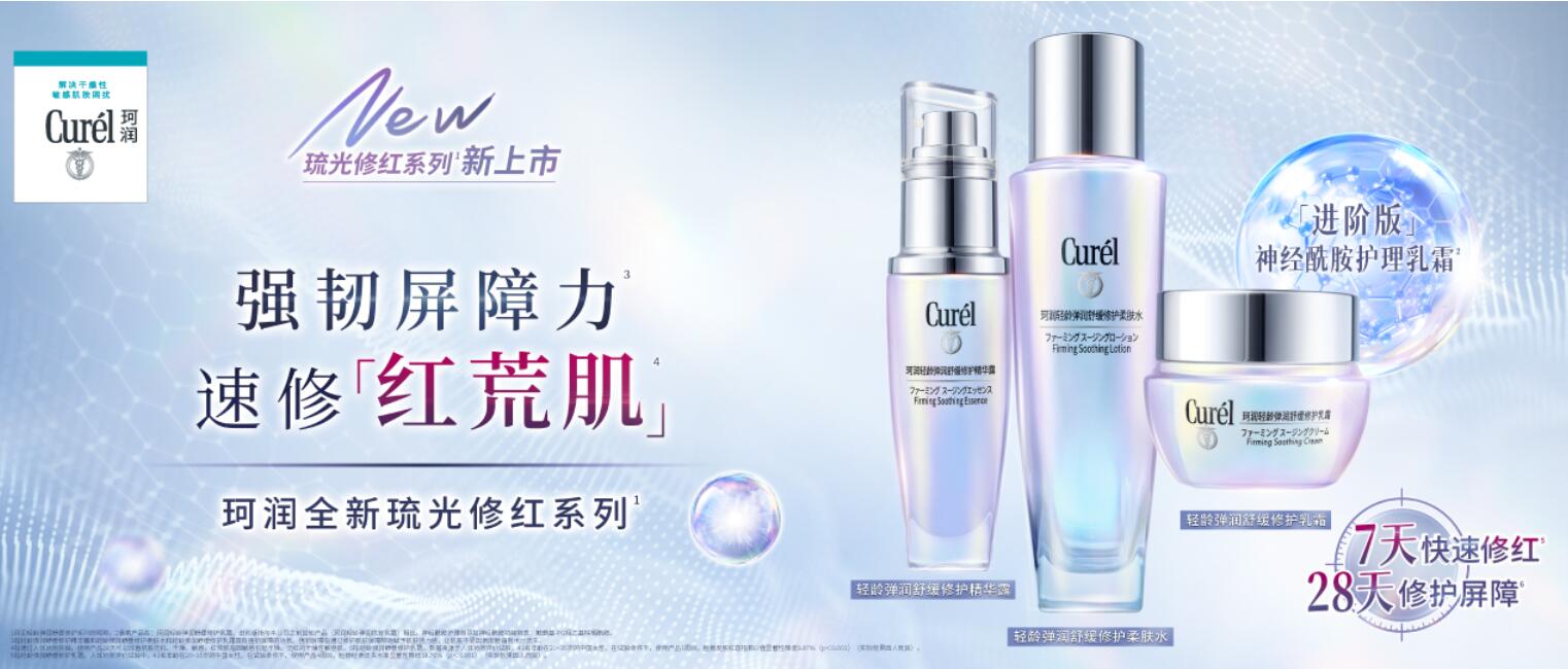 花王旗下专注干燥性敏感肌护理品牌“珂润”推出轻龄弹润琉光修红系列,针对中国干敏肌“干、红、纹”难题。“轻龄弹润舒缓修护乳霜(琉光修红瓶)”作为“进阶版”的神经酰胺护理乳霜,王牌成分神经酰胺功能物质搭配专研舒修成分及四重植物精粹,“促耐受,韧肌底”,7天快速修红、28天修护屏障,临床试验数据“说话”。配合添加了依克多因的保湿化妆水“轻龄弹润舒缓修护柔肤水(舒红水)”,从根源助力强化肌肤屏障,精准应对Z世代“红荒反复”。