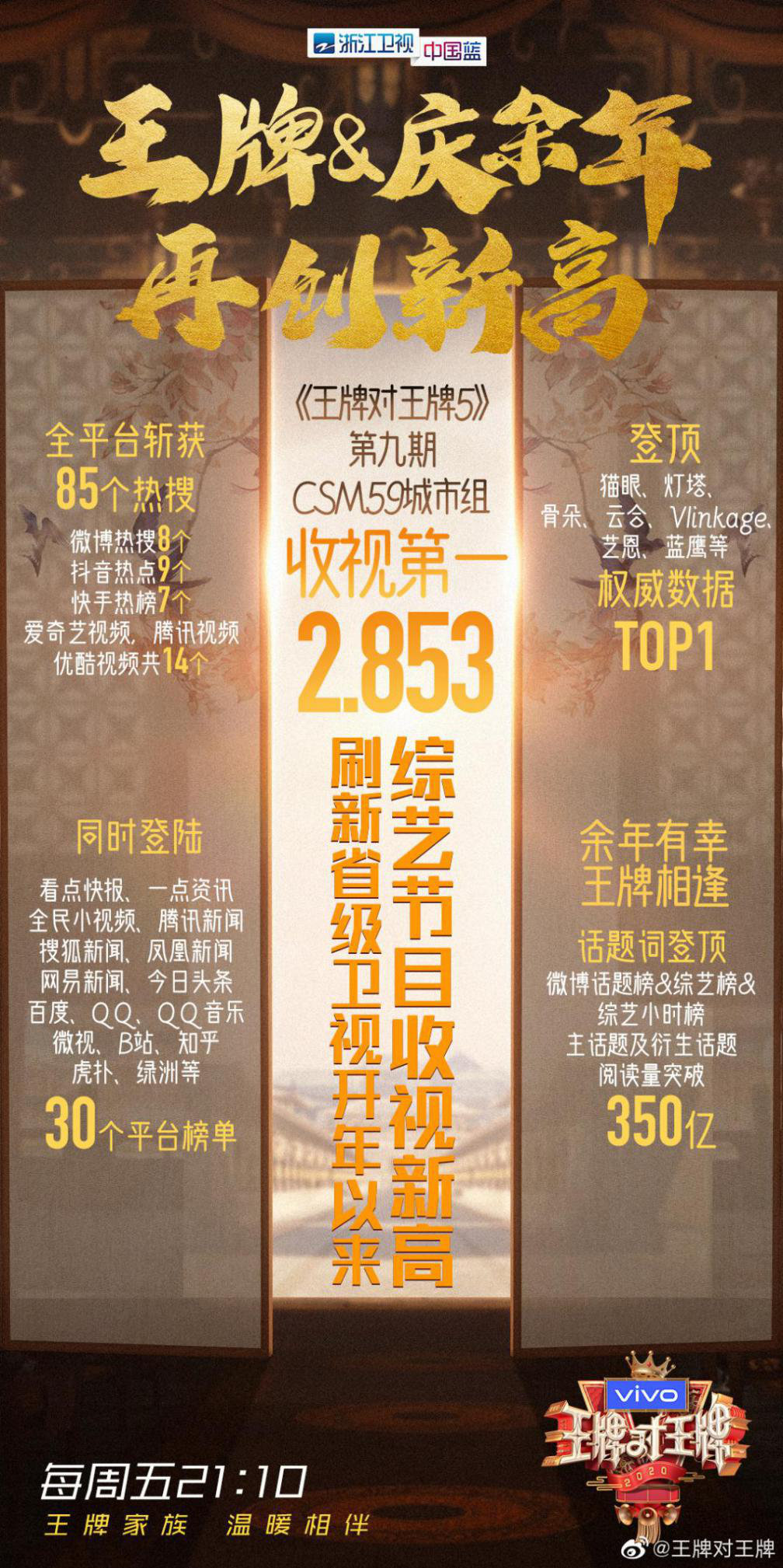 上周五,《王牌对王牌》庆余年特辑2.853收视第一,刷新2020开年至今省级卫视综艺节目收视新高。