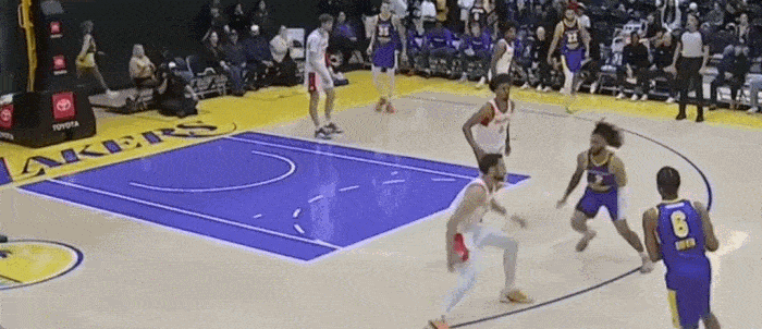 在里夫斯受伤,东契奇被报道大腿有伤病,再加上老詹年纪也大选择性发力,其实看似富裕的湖人队在后场进攻和发起方面缺少球员,史密斯由于身材问题上场机会并不多。巴夫金作为23年的首轮秀,其实在老鹰和篮网都并没有很好的发展机会,但是他本身天赋是有,更何况体型优势也可以摇摆到2号位。