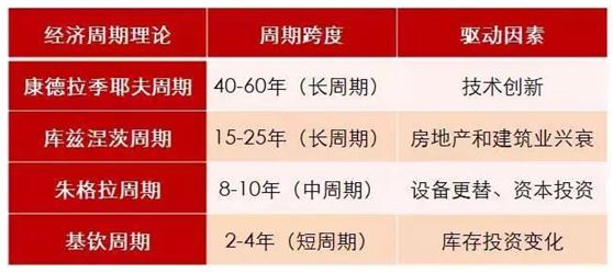 在世界经济周期运动中最长的周期是康德拉季耶夫周期,它一个循环是60年一次。中国讲60甲子,循环一次就是一个康德拉季耶夫周期。它分为回升、繁荣、衰退、箫条。
