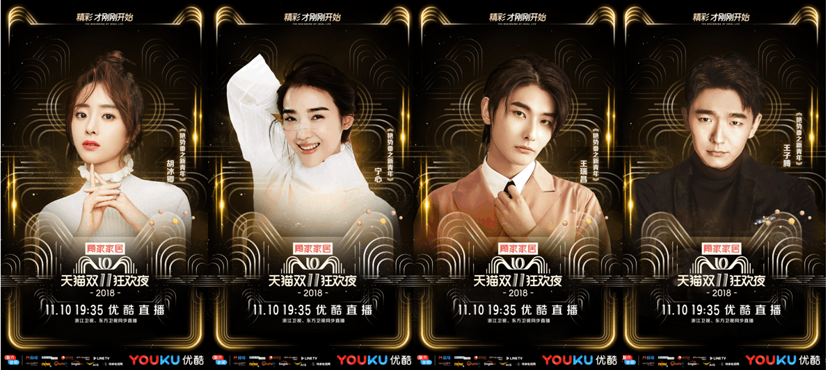 说出来你可能不信,“天猫双11”这个IP到今年已经整整十周年了,大家兴高采烈一起过节的声势也一年比一年浩大。既然是节日,自然少不了“晚会”这一中华民族的过节标配。自2016年开始,“天猫双11狂欢夜”作为天猫双11购物节衍生的综艺新物种横空出世,在11日0点的购物狂欢开始之前,先带着大家燥起来。