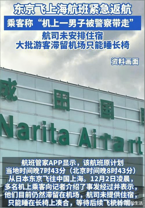 东京至上海航班紧急返航后续:男子被警方带走,乘客机场长椅过夜无住宿