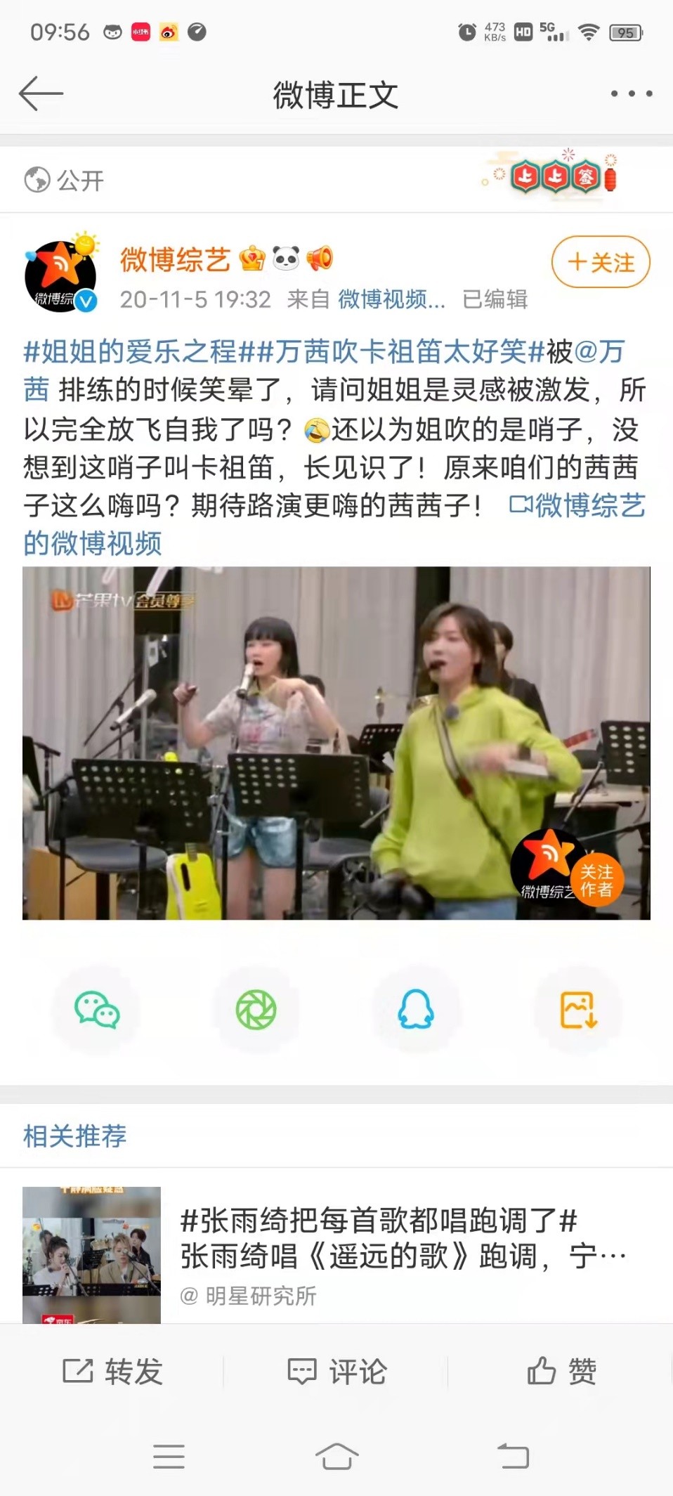 除了搞怪的乐器演奏,万茜唱歌也能带出一阵搞怪风~