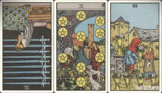 牌:宝剑九- 星币十+ 圣杯六+
