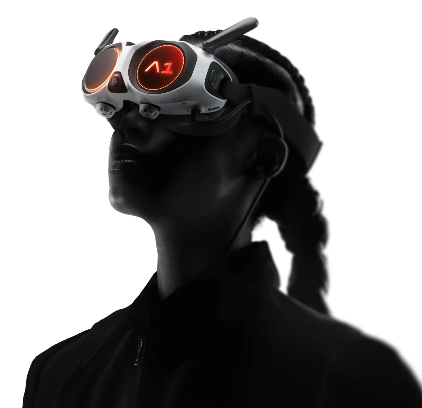 影翎AntigravityA1 所搭配的 Vision飞行眼镜将专业级VR体验浓缩至仅248克的机身中。采用符合人体工学的三点式悬浮配重系统,配合亲肤级透气材质,实现长时间佩戴仍保持"无感"的舒适体验,让使用者完全专注于空中视界。