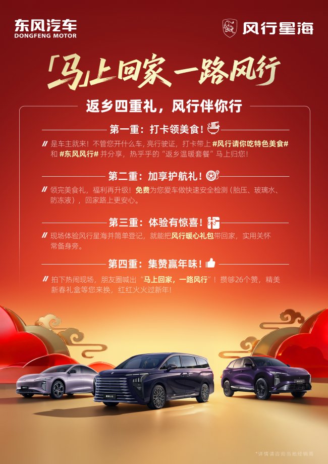 眼下,春运仍未结束,全国高速路上的“风行暖心驿站”依然灯火长明。东风风行正以最朴素也最专业的方式,守护每一程奔赴团圆的旅途。“马上回家,一路风行”——这不仅是本次活动的口号,更是一份沉甸甸的承诺:春运归途有风行,温暖始终在路上。