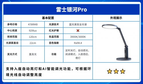 护眼台灯排行榜第四名:雷士银河Pro(推荐指数:⭐⭐⭐)