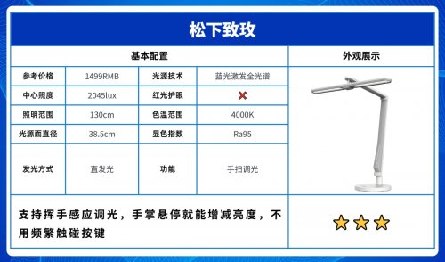 护眼台灯排行榜第三名:松下致玫(推荐指数:⭐⭐⭐⭐)